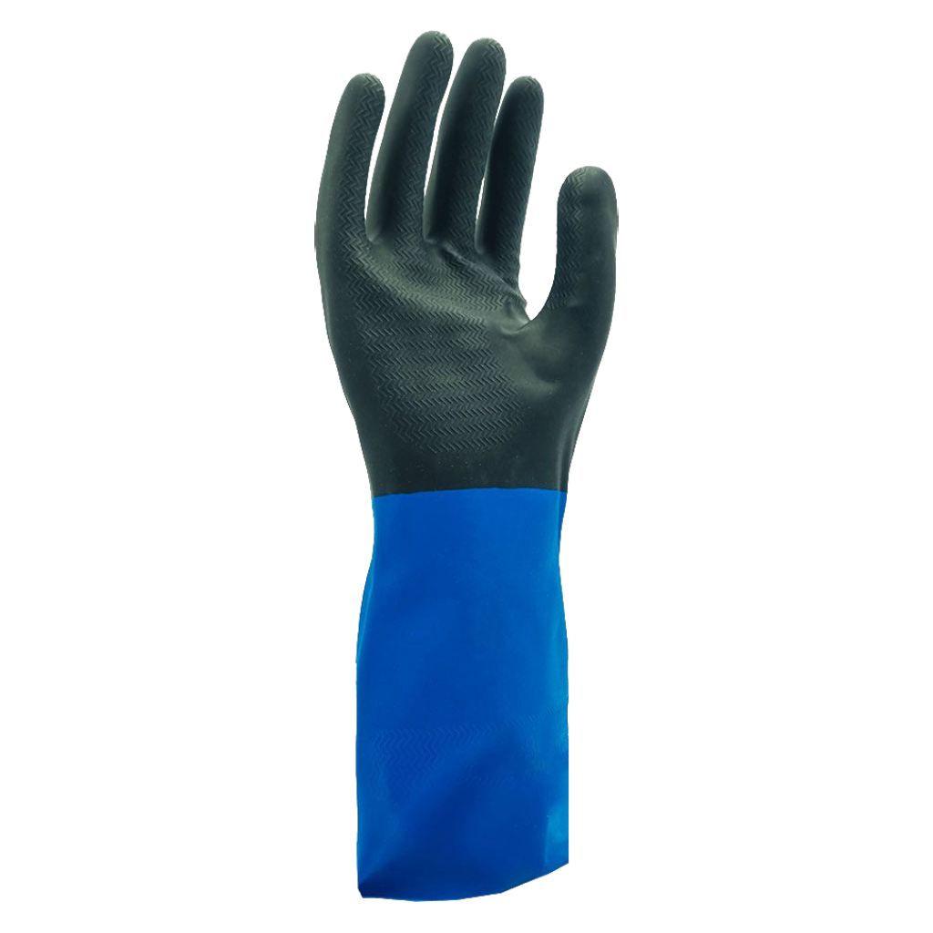 Esta luva de proteção química é flexível, confortável e resistente a uma vasta gama de produtos químicos. Concebida com uma estrutura de neoprene sobre borracha natural com aderência do tipo “esteira de trator”, a luva SHOWA CHM fornece a máxima precisão, sensibilidade e defesa. O forro de algodão flocado ajuda a manter uma temperatura confortável dentro da luva.